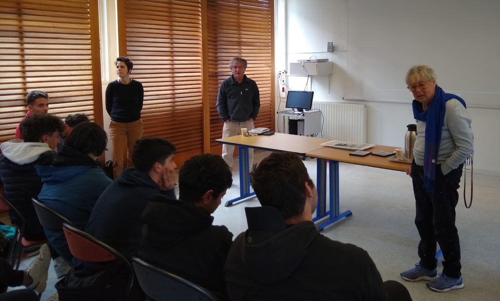 Mardi 7 mai, à l’initiative de Stéphanie WALCH, enseignante en charge de l’Unité Pédagogique pour Elèves Allophones Arrivants (UPE2A), ce film a été présenté à différentes classes de notre établissement en présence des réalisateurs Agnès LANUSSE (à droite, photo ci-dessous) et Dominique GAUTIER (au centre, photo ci-dessous).