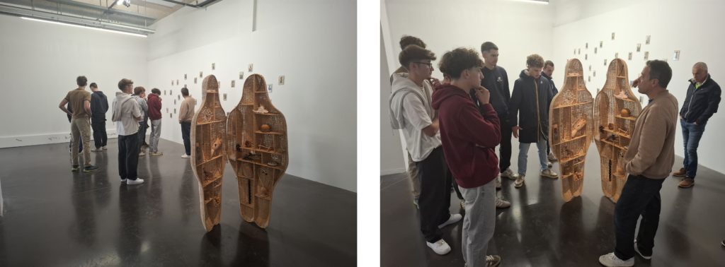 Début novembre 2025, le groupe des élèves ayant participé au projet, accompagné de leur professeur d’atelier M MIGNON, s’est rendu au Bel Ordinaire pour voir la réalisation in-situ, mais aussi pour découvrir l’ensemble de l’exposition dans laquelle elle prend place (photos ci-dessus).