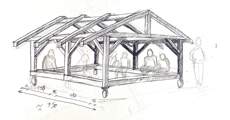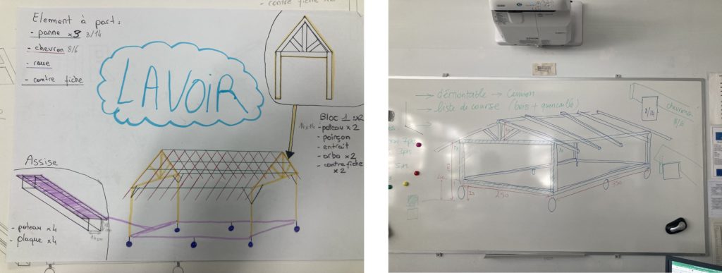À partir des techniques de charpente, les élèves construisent une structure bois qui s’inspire des architectures des anciens lavoirs – ces lieux autrefois animés par les voix des femmes, par la répétition des gestes, par la vie communautaire. Si leur fonction initiale s’est perdue, ces constructions demeurent dans les villages comme autant de témoins silencieux. Certains deviennent des abris, des coins d’ombre, des points de rencontre pour les jeunes générations. En s’inspirant de cette métamorphose des usages, l’œuvre réalisée devient un lieu propice aux échanges, aux confidences, à la convivialité. À travers ce travail, les élèves donnent forme à une mémoire collective, tout en l’inscrivant dans un présent réinventé.