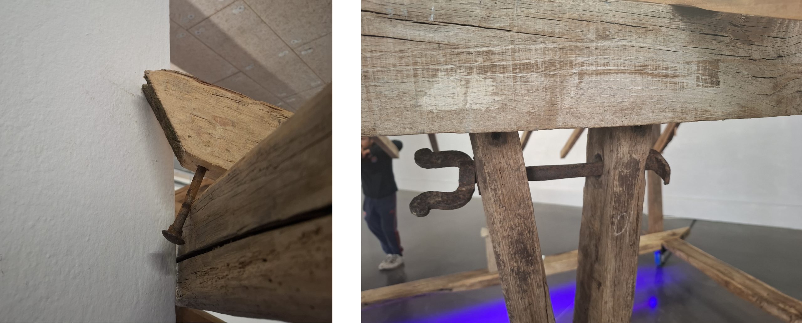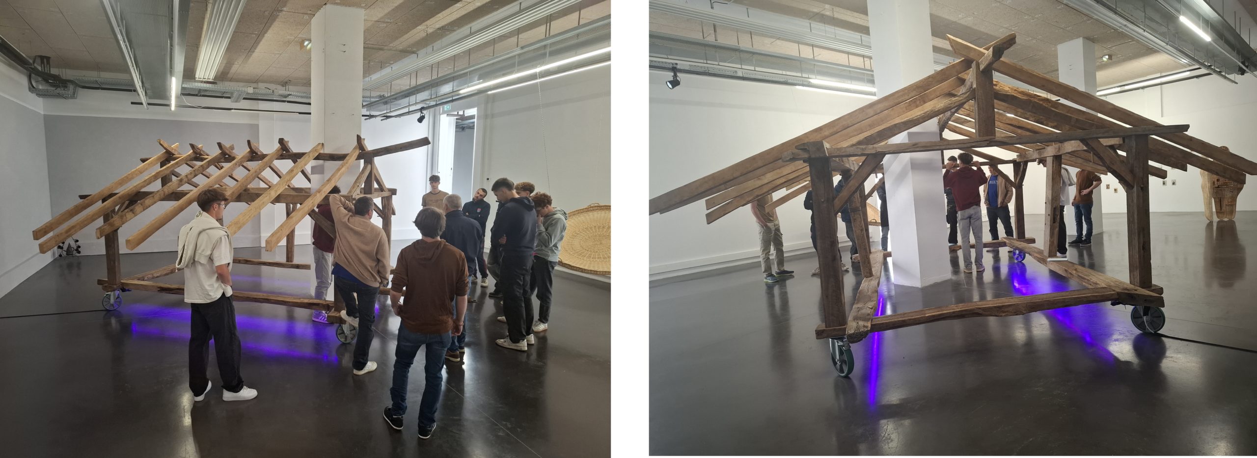 Ce projet, mené sur l’année scolaire 2024-2025, porté par une volonté forte de décloisonnement, vise à rapprocher les élèves du monde de l’art contemporain, tout en valorisant les savoir-faire liés à leur filière professionnelle. Il s’agit d’une rencontre entre regard documentaire et imaginaire artistique, entre trame historique et démarche créative. Les élèves ont travaillé de manière pluridisciplinaire : le projet s’articule entre des recherches graphiques et la modélisation de la pièce artistique en arts appliqués, avec Mme DUCLOS ; la création de textes autour du « savoir-faire », une réflexion sur « quand l’architecture devient un lieu de rencontre » et enfin la problématique de la trace comme outil de transmission et objet de mémoire en français avec Mme PEREZ. La réalisation de la charpente en atelier avec Mr MIGNON. Ces séquences pédagogiques sont ponctuées de rencontres et d’échanges tout au long de l’année avec l’artiste plasticienne Clara DENIDET et des rencontres au Bel Ordinaire à Billère, notamment avec les régisseurs.