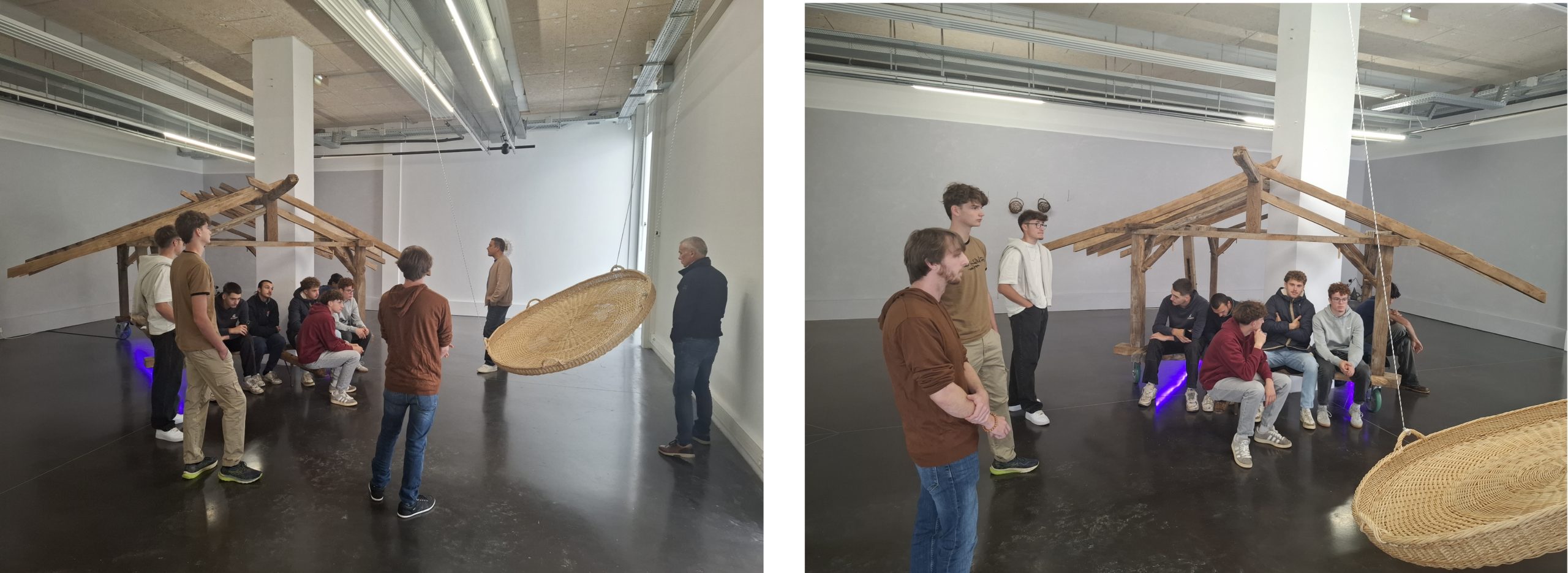 Début novembre 2025, le groupe des élèves ayant participé au projet, accompagné de leur professeur d’atelier M MIGNON, s’est rendu au Bel Ordinaire pour voir la réalisation in-situ, mais aussi pour découvrir l’ensemble de l’exposition dans laquelle elle prend place (photos ci-dessus).