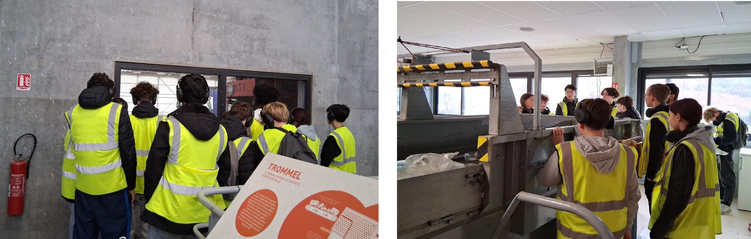 Evidemment, le point d’orgue de la visite a été la découverte des installations où les jeunes ont pu voir se réaliser concrètement les différentes opérations nécessaires pour séparer les déchets. Casques de protection auditive indispensables !