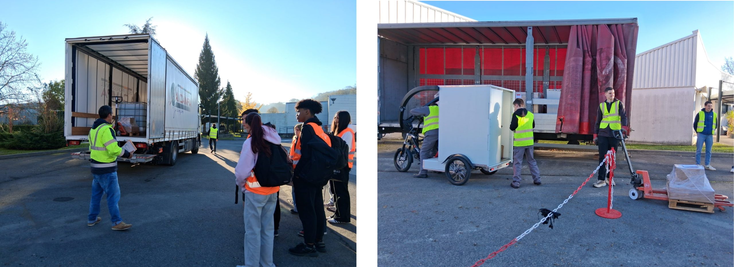 Bien entendu ils ont assisté, et participé, à l’une des phases majeures de la chaîne logistique, à savoir le chargement des marchandises expédiées dans différents moyens de transport, allant du poids lourd au tricycle léger. Manipulation du chariot de manutention et du hayon élévateur à la clé !