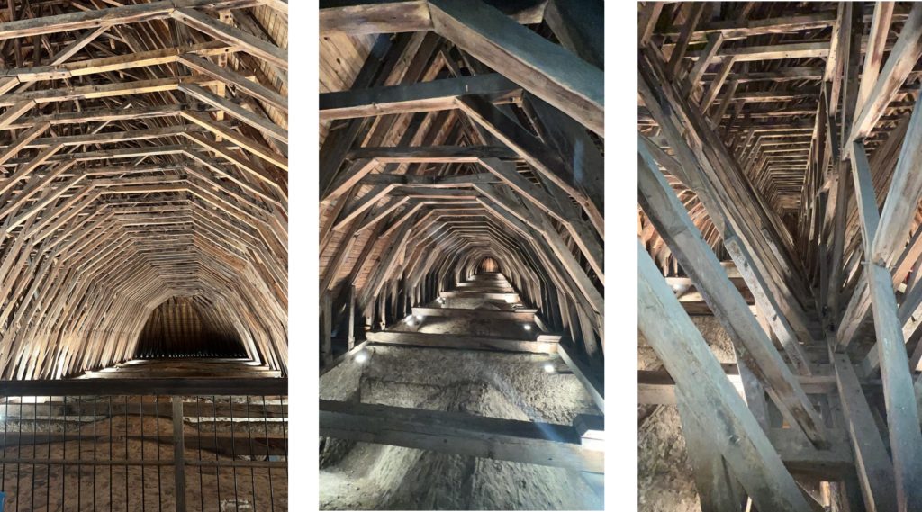 La visite était menée par une guide qui a non seulement commenté la charpente, mais a aussi présenté l’ensemble de l’édifice, notamment sa construction à laquelle ont participé des charpentiers un peu particuliers : les « cagots », communauté mise en marge de la société, mais particulièrement experte dans les métiers du bois.