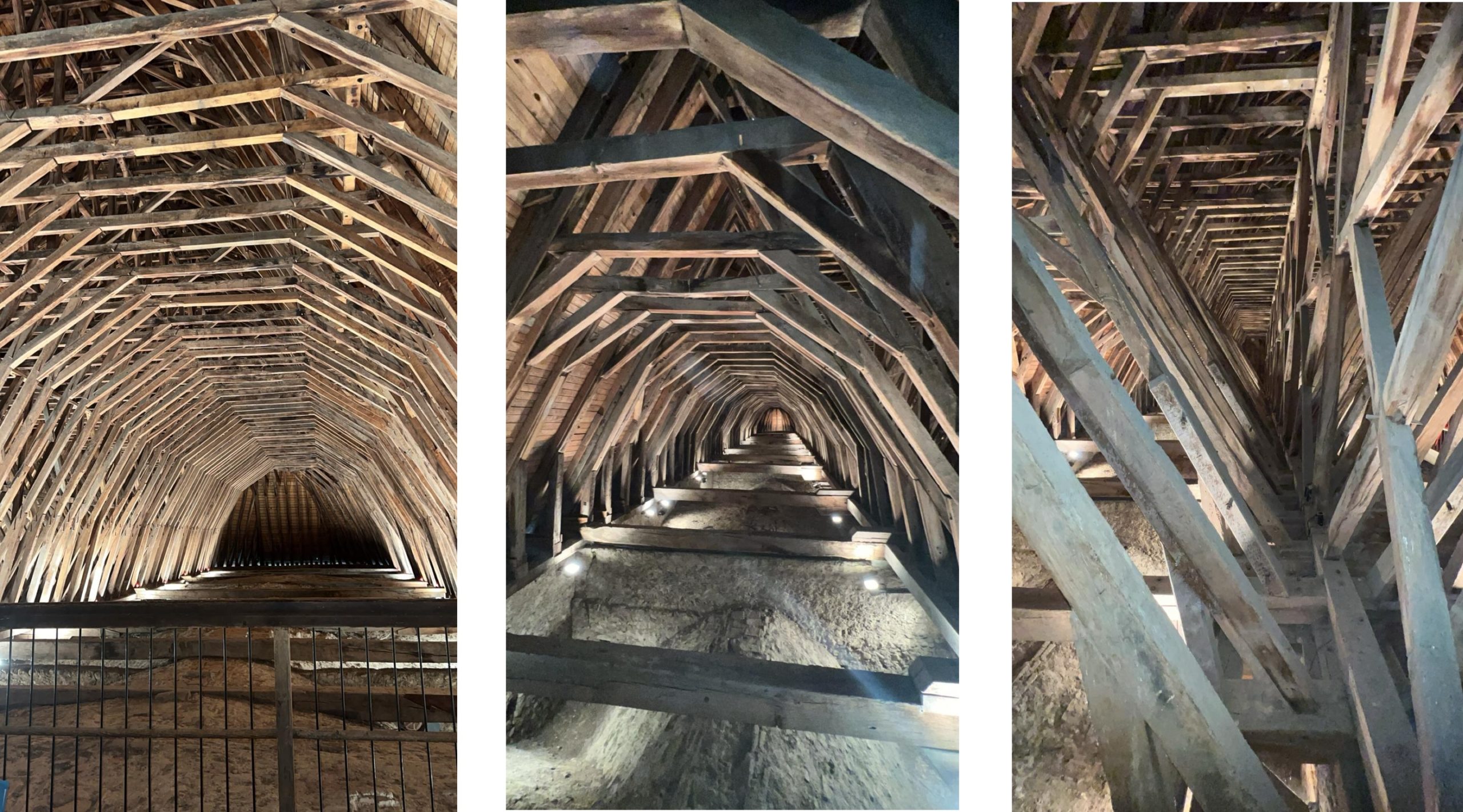 En effet, celle-ci présente une structure dite en « double coque de bateau renversé » particulièrement spectaculaire et aux dimensions imposantes : 50 mètres de long par 18 mètres de haut. Invisible depuis l’intérieur de l’église, il faut monter sous le toit pour pouvoir l’admirer. Le mot n’est pas trop fort au vu de la prouesse technique qu’elle représente, sachant qu’elle date du XVe siècle !