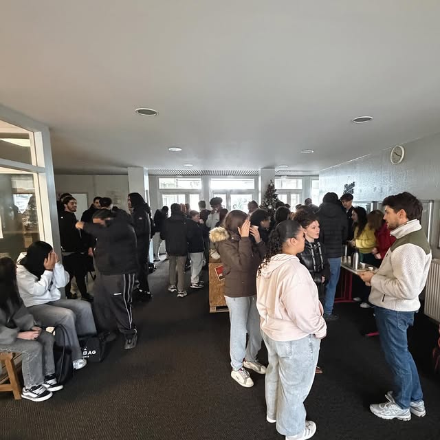 Le mardi 6 janvier, le responsable local du Secours Populaire (avec la polaire beige clair et verte sur les photos) est venu pour récupérer le fruit de la collecte. Il a été très surpris par le volume de vêtements recueillis puisque le bac était largement rempli, alors que ce genre d’opération est habituellement moins productif. A cette occasion, une collation était offerte par le lycée pour marquer l’évènement.